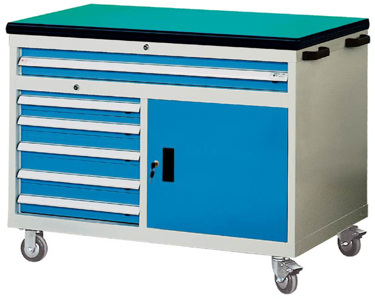 3、左侧配5个单轨抽屉,面板高度为75mm*2和100mm*3,载重80KG,可打开90%